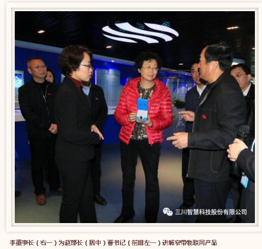 发布时间:2017-03-242017年3月23日,江西省委常委、组织部部长赵爱明一行,在鹰潭市委书记曹淑敏等市领导的陪同下莅临三川智慧调研,三川集团董事长李建林热情的接待了赵部长一行,并陪同参观公司展厅。